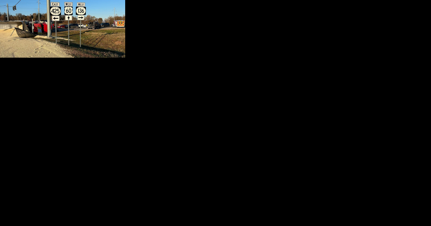 Overturned semi spills grain on Henderson roadway